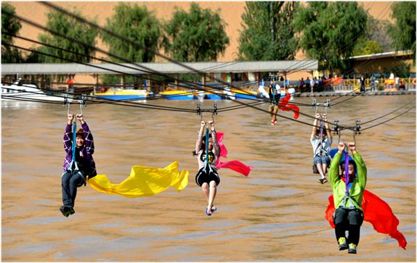 体验羊皮筏子,感受轻舟踏浪的乐趣;坐上沙漠冲浪车,体验沙海冲浪的惊险与刺激;乘坐滑板从百米高的沙丘上滑下,寻找"飞翔"的感觉;挑战横跨黄河820米的黄河飞索,感受瞬间飞跃的刺激;尝试大漠乘驼,耳听阵阵驼铃,望黄沙漫漫,悠然自得,惬意无比……丰富的游乐项目,吸引着越来越多的人走进沙漠,了解中卫。
